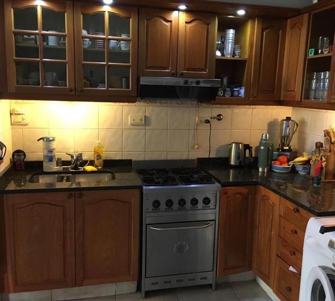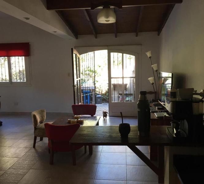 Dos habitaciones con placard, Living con hogar a leña, cocina comedor con muebles bajo y sobre mesada, espacio para una tercera habitación que actualmente es una sala de estar integrada a la cocina comedor, baño con bañera, cochera cubierta con portón automático, ingreso pasante por portón al costado, altillo sobre cochera, parrilla, estufas t/b en las habitaciones y cocina comedor.