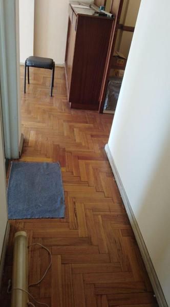 1 dormitorio con placard, pasillo distribuidor, todo con pisos de parquet.