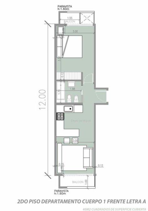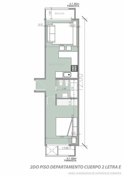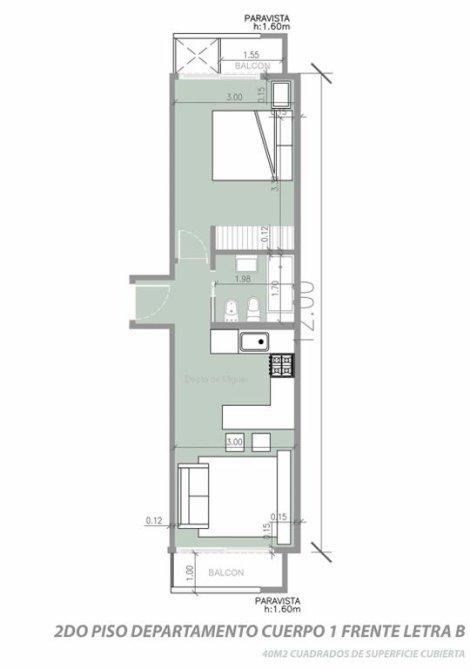 Está distribuida de forma pasante por lo cual al ingresar te encontrás con el baño completo. Luego a los lados encontramos la habitación con placard embutido y balcón, y hacia el otro lado de la entrada está el living-comedor conectado a cocina también con balcón.