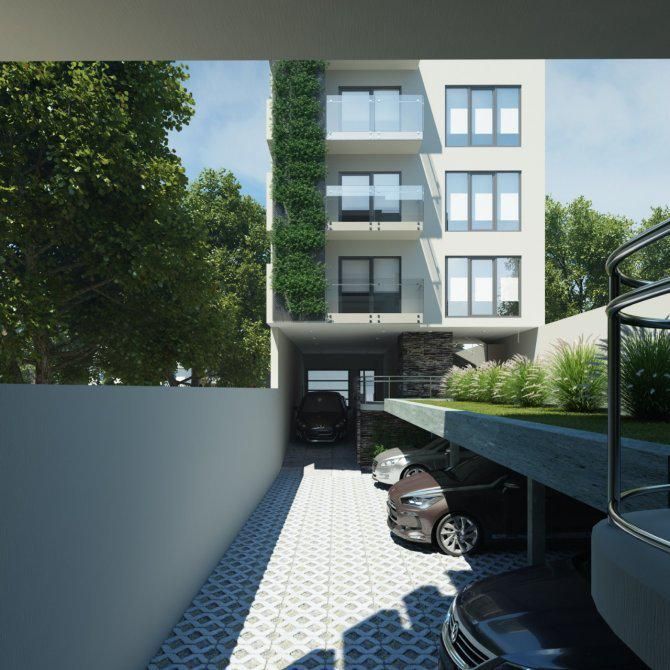 - Carpintería de aluminio blanco, pre-pintado con doble vidrio hermético.