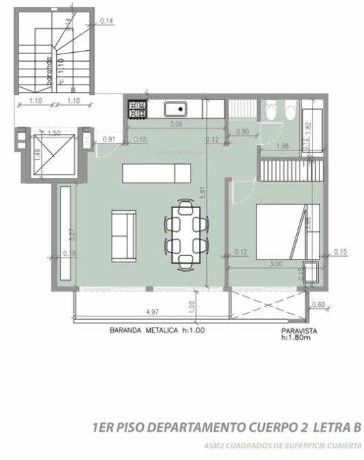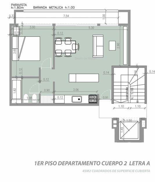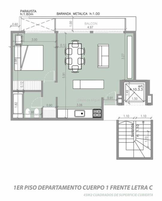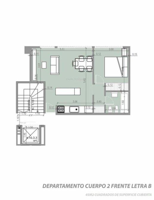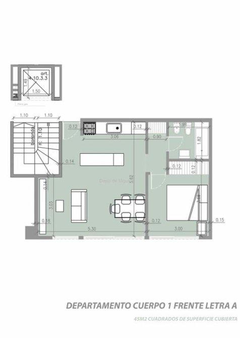 Al ingresar te encontrás con el living-comedor con amplio balcón que aporta luminosidad, conectado a la cocina con muebles bajo y sobre mesada. Luego encontramos el baño completo y la habitación con placard embutido .