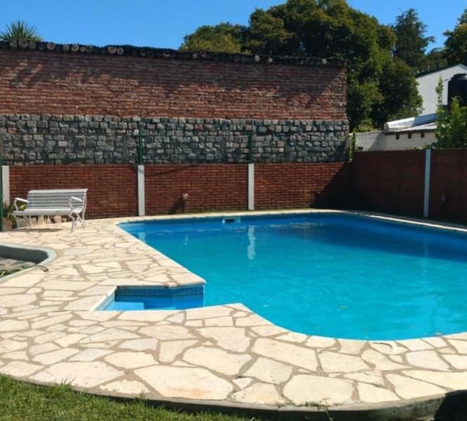 La propiedad se encuentra ubicada en un enorme terreno y goza de un impecable estado. Esta distribuida en dos plantas amplias y luminosas, Posee mas de 5 ambientes (4 dormitorios). Tan solo en el nivel del suelo se encuentra el dormitorio principal, living-comedor diario, galería, lavadero, quincho (con baño y vestuario), estacionamiento extenso con capacidad para dos autos y una piscina en perfecto estado. El parque esta optimo y muy bien mantenido.