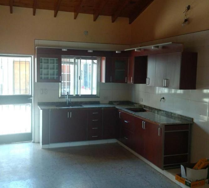 Recibidor, cocina comedor muy amplia amoblada con bajo mesada y alacenas , dormitorio principal con placard empotrado, baño completo, garage a continuación de quincho ( con opción de unificar el ambiente logrando 3,5 m x 12 m aproximadamente), patio y al fondo un dormitorio con baño, lavadero y terraza.