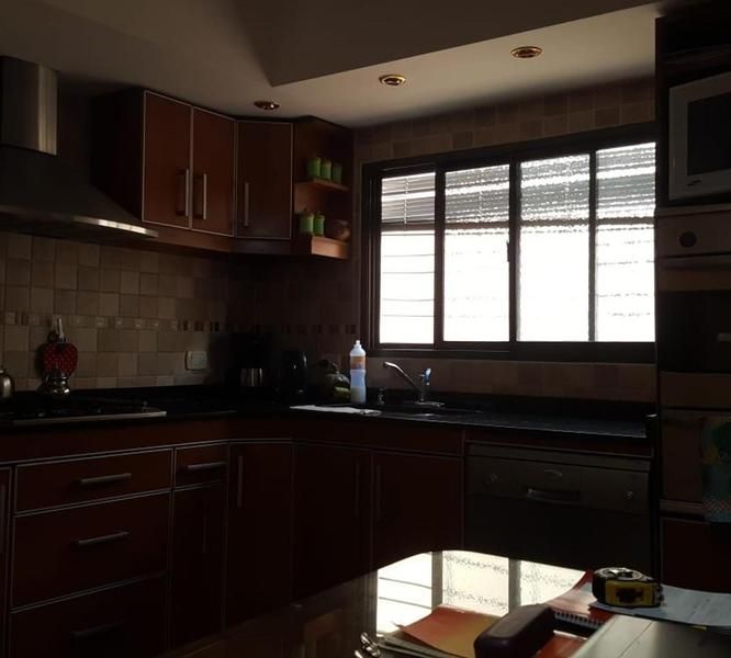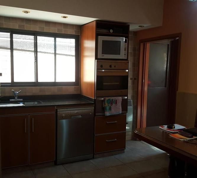 Cocina-comedor espaciosa y equipada con muebles de alto y bajo mesada.
