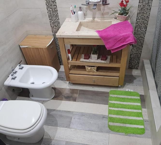 Planta alta: tres dormitorios, todas las habitaciones cuentan con placares y sus pisos de madera tarugada. También, cuenta con un quincho con parrilla, lavadero y baño. Tiene un bello patio para disfrutar y una pileta de 8x4mts. Garage cubierto con capacidad para dos vehículos.