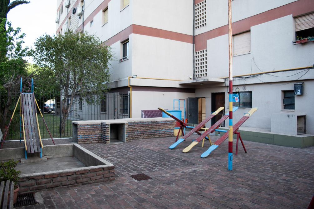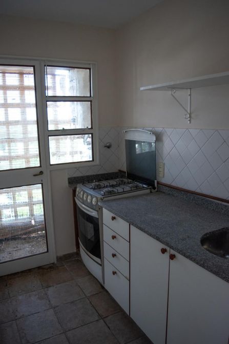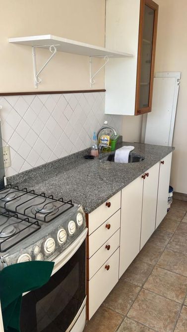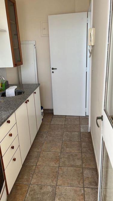 El departamento se encuentra en el 8° piso con disposición al lateral. El mismo cuenta con 3 ambientes: living-comedor muy amplios y luminosos, cocina con muebles bajo mesada, un pequeño sobre mesada y horno-cocina. La misma está conectada a espacio con termotanque. Además, tiene 1 baño completo con ducha y bidet y 2 habitaciones ambas con placard.
