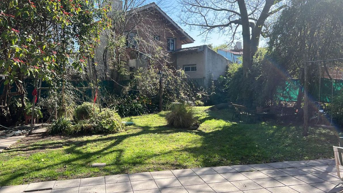 La propiedad está construida en medio de dos lotes. Contando con jardín al frente, fondo atrás, lateral izquierdo y 2 garage cubiertos. Además, cuenta con 3 baños completos y 3 dormitorios/oficina y lateral derecho otro garage cubierto.