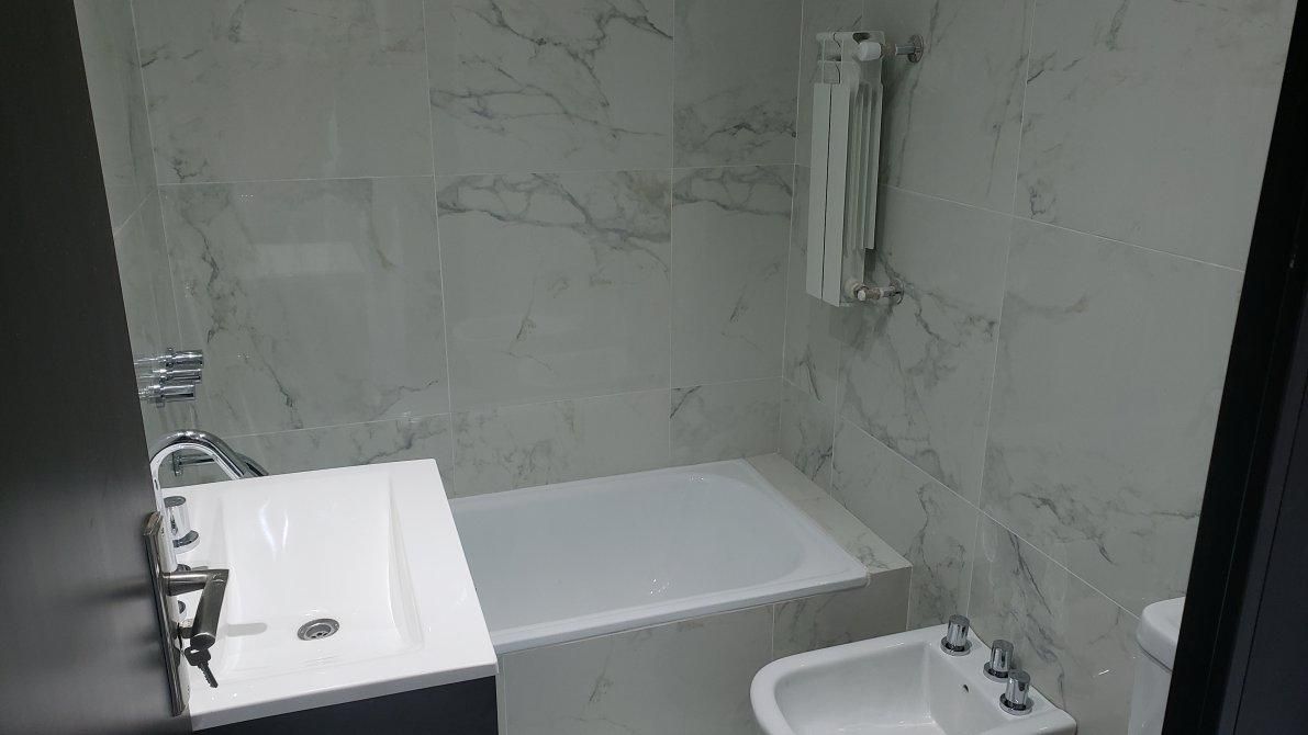 -Pisos de porcelanato en living y pisos flotantes en el dormitorio.