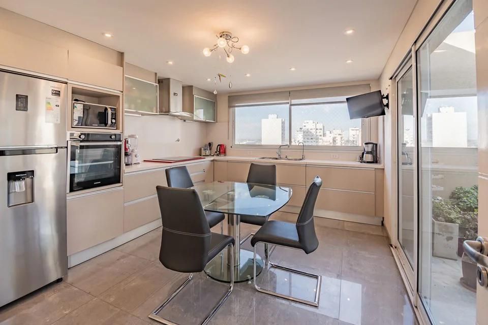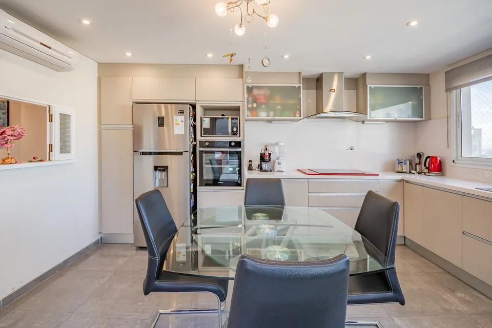 -Cocina desayunador diario ( 3.50 x 4.48) con barra pasaplatos al living. La cocina de excelente distribución, super luminosa, cuenta con muebles Johnson con cierre seguro, mesada en silestone de gran calidad, bacha con canilla monocomando con filtro de agua y dispenser de detergente incluidos, campana extractor, horno electrico empotrado y anafe de 4 hornallas ambos marca Samsung. Aire acondicionado frío calor instalado.