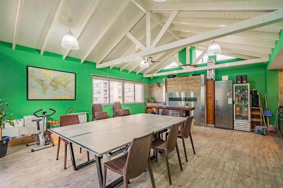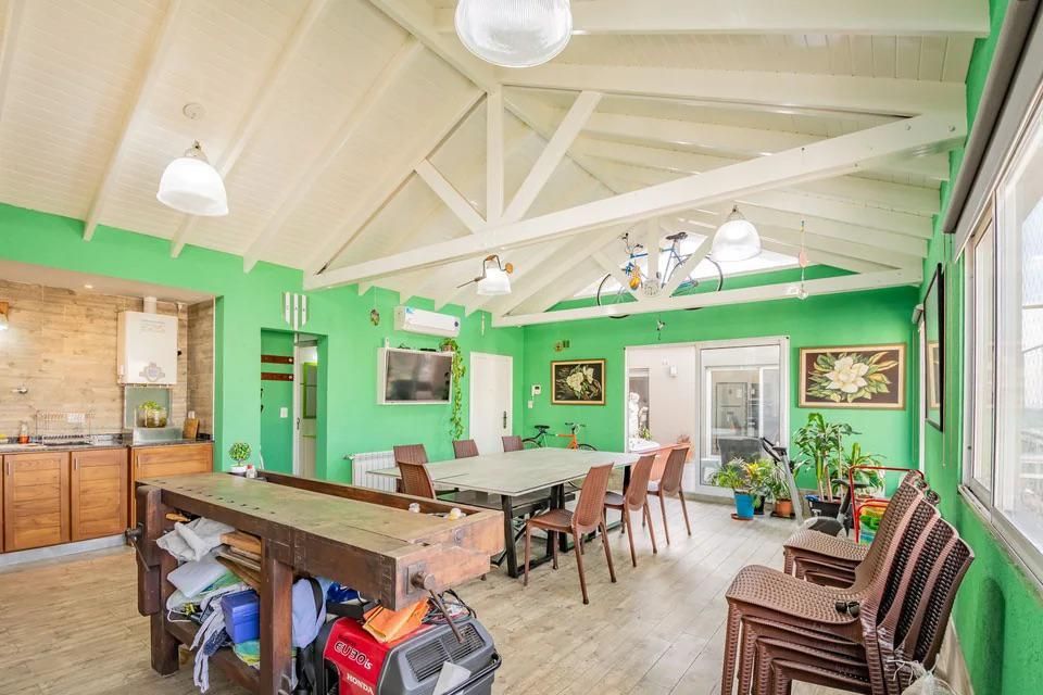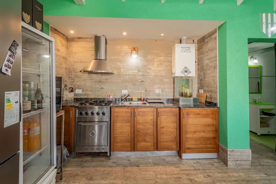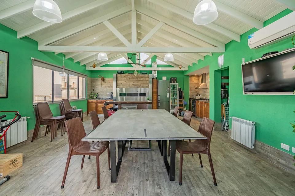 - Quincho super completo, con salida a palier con puerta blindada, amplia parrilla con puerta de aluminio, horno industrial a gas con campana, mesada de granito con bacha y canilla monocomando, pisos en porcelanato simil madera, toillete, aire acondicionado frío calor. Espacio para más de 40 personas.