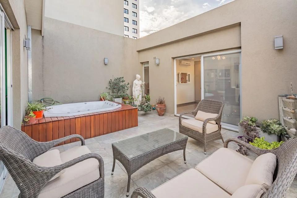 -Terraza descubierta (3.92 x 6.67) con Jacuzzi para 4 personas y balcón con vista al contrafrente.