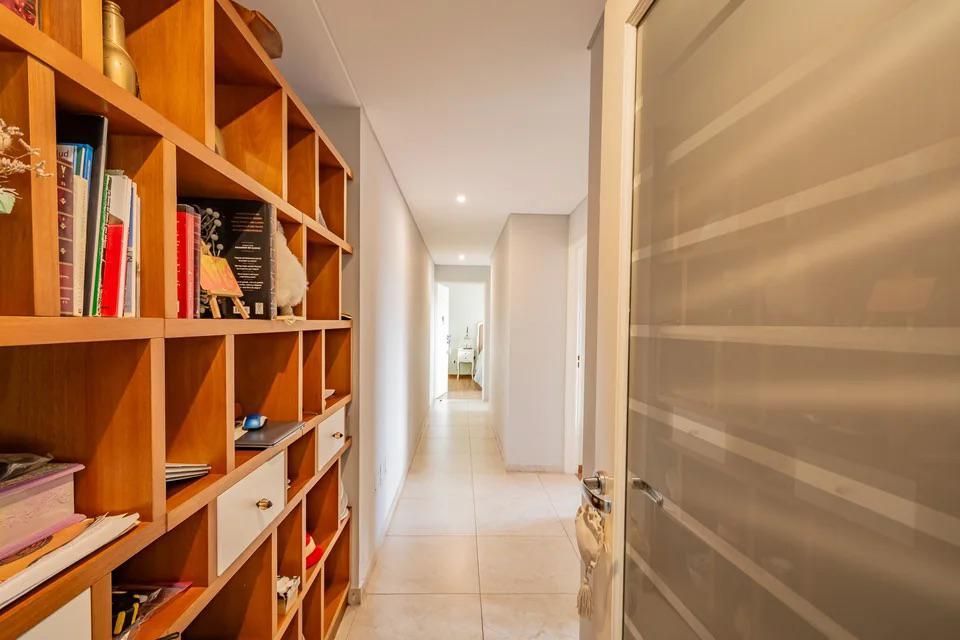 - Pasillo distribuidor (1.41 x 7.30) con mueble tipo repisa, que nos lleva del living a las habitaciones y baño principal