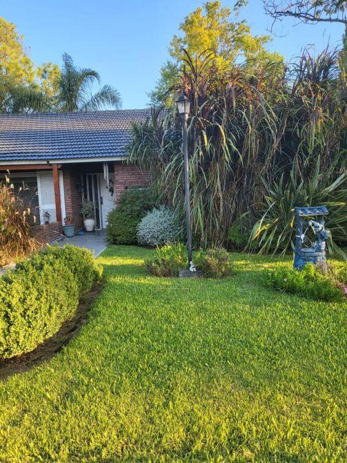 La propiedad se encuentra ubicada en el lote 252 sobre una esquina por lo que tiene ingreso por ambas calles. La misma consta de un gran jardín con cochera cubierta con espacio para dos autos. Dentro de la propiedad encontramos un living-comedor, cocina-comedor. También, cuatros dormitorios y dos baños completos. En el exterior tenemos el lavadero y la pileta con protección y enrejado de seguridad para niños.