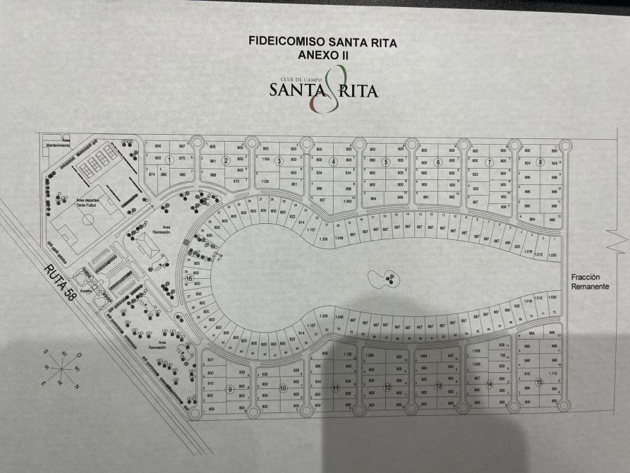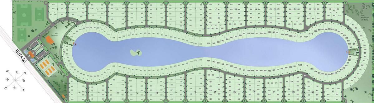 Santa Rita cuenta con un total de 450 lotes desde 800m2, 150 de los cuales son frentistas a una imponente laguna central de 15 has en la cual pueden practicarse todo tipo de deportes náuticos a vela (sin motor) y pesca deportiva.