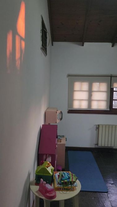 A la propiedad accedemos por un gran hall de entrada, luego un living-comedor super luminoso conectado a cocina con muebles bajo y alto mesada. Luego, en la planta alta con un gran playroom y sala de estar. Además, un baño completo con espacio de guardado. Y dos habitaciones ambas con placard embutido. Al salir nos encontramos con una galería techada, y patios con pileta y parrilla.