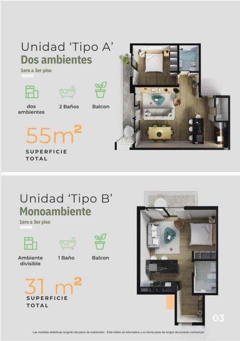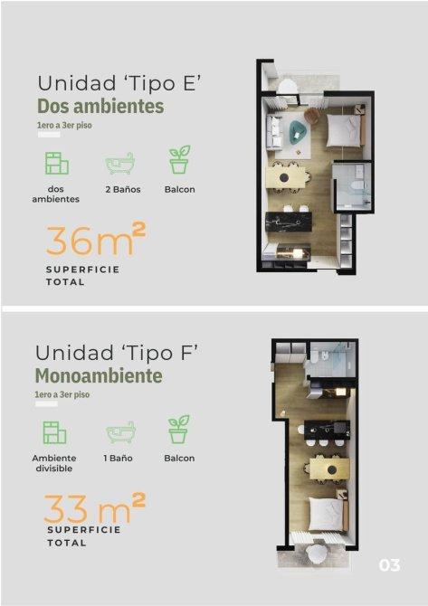 Departamentos de 1, 2 y 3 ambientes