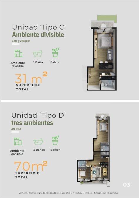 Departamentos de 1, 2 y 3 ambientes